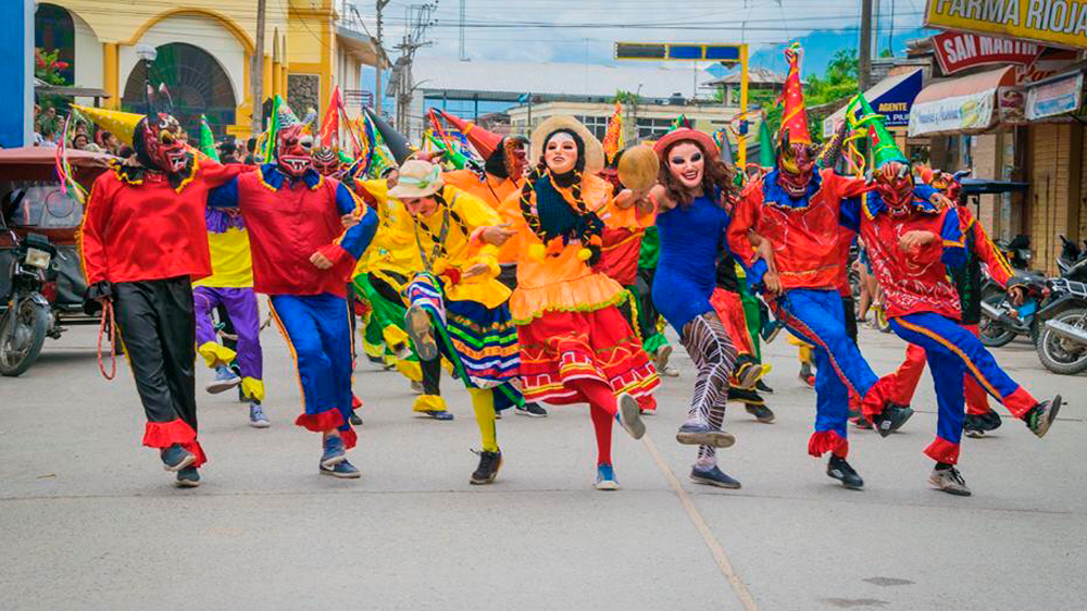 Descripción: El Carnaval Riojano es una explosión de alegría y tradición, donde calles y plazas se llenan de música, danzas y colores vibrantes. Entre juegos de agua, comparsas y el corte del árbol de la yunza, la ciudad celebra con orgullo su cultura, compartiendo risas, amistad y la calidez única de Rioja.