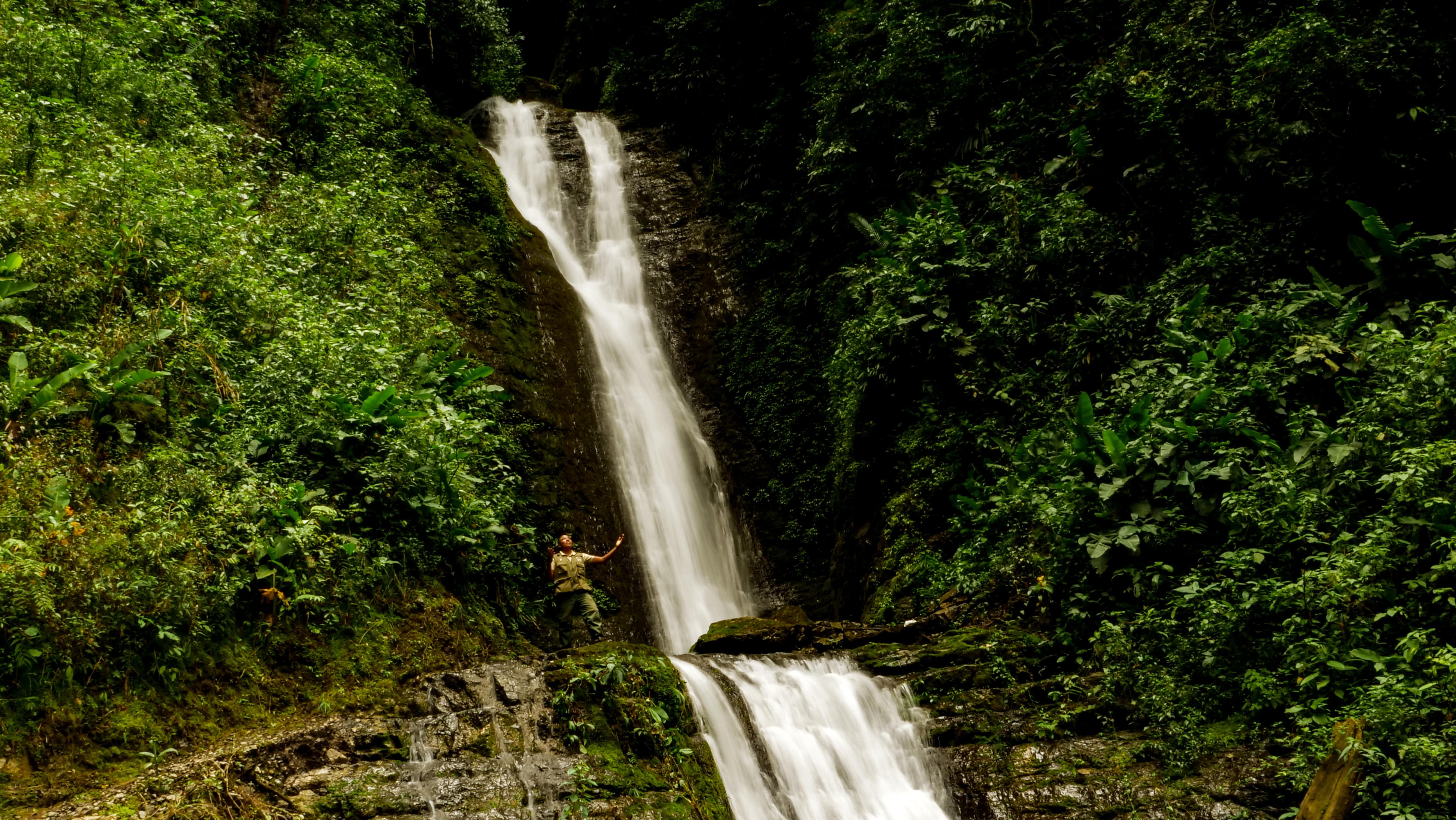 La cascada Urkuchaki se ubica en el Sector Nueva Zelandia, en medio de un bosque nuboso y montañoso, en la vertiente oriental del Perú, en plena ceja de selva; con una temperatura máxima anual de 25 °C y mínima 18 °C; con una precipitación máxima de 4 200 m.m. y mínima de 1800 m.m. La cascada mide aproximadamente 42 metros de altura, cuenta con dos caídas de agua cristalina y fría de la quebrada Urkuchaki, la misma que nace al interior del Bosque de Protección Alto Mayo. La primera caída mide aproximadamente 12 metros de altura, y la segunda 30 metros, esta última forma una poza de más de un metro de profundidad, la misma que discurre un corto tramo y luego desaparece porque sus aguas se van infiltrando hasta perderse totalmente entre las rocas. En el recorrido hacia la cascada se puede apreciar especies de flora como: moena, tornillo, cedro, ojé y otros; además, especies nativas de orquídeas y bromelias; entre la fauna se destaca la presencia de especies de primates, como el mono ardilla y pichico; y entre las aves, ubicamos a la tangara del paraíso, gallito de las rocas, carpintero de cuello rojo, Colibrí pico de hoz, etc. En el lugar se puede realizar la toma de fotografías, filmaciones y observación de especies de flora y fauna silvestre. El recorrido se complementa con caminatas y visitas a parcelas de producción de café bajo sistemas agroforestales, así como también orquidearios y meliponarios ubicados en el Sector Nueva Zelandia, lo que lo hace ideal para la práctica de turismo de naturaleza y agroturismo.